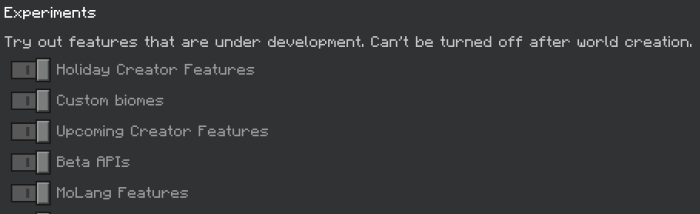 В настройках мира необходимо включить Экспериментальные опции. Это что?