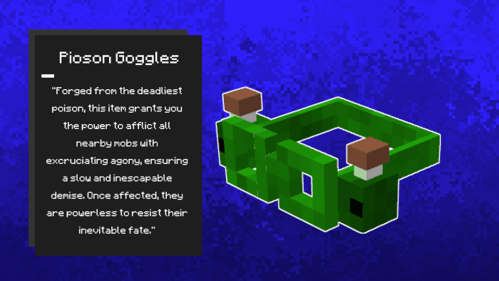 Мод "Beyond's Mask & Goggles" для Minecraft предоставляет игрокам возможность разнообразить стиль своего персонажа, добавляя в игру различные очки и маски с уникальными пассивными способностями. Вот описание некоторых из них: